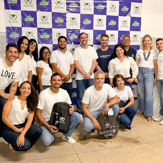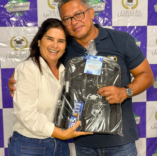 Como forma de acolhimento, nossos professores receberam um Kit Universitário, pensado para facilitar o dia a dia na escola, contendo mochila, garrafa, bloco de anotações, caneta, piloto, apagador e mouse pad,